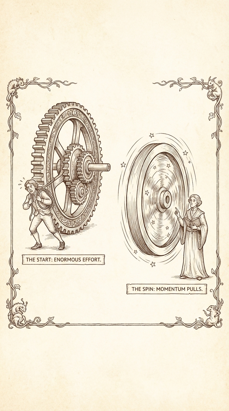 Momentum is energy. Once you're moving, finishing is far easier than starting was. The inertia is the enemy — not the work.