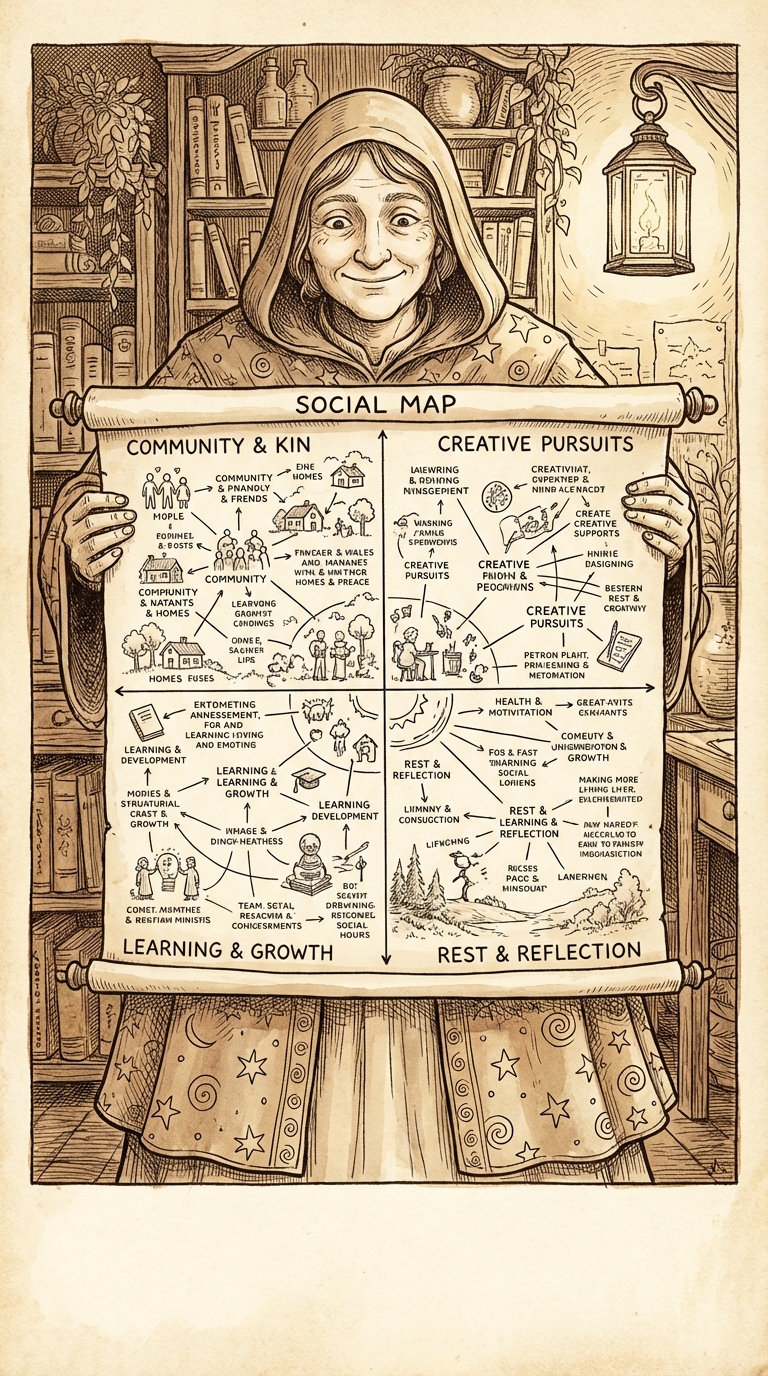 Today's practice: pick one decision you're planning. Draw your social map with all four groups.