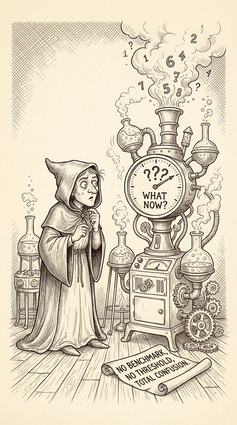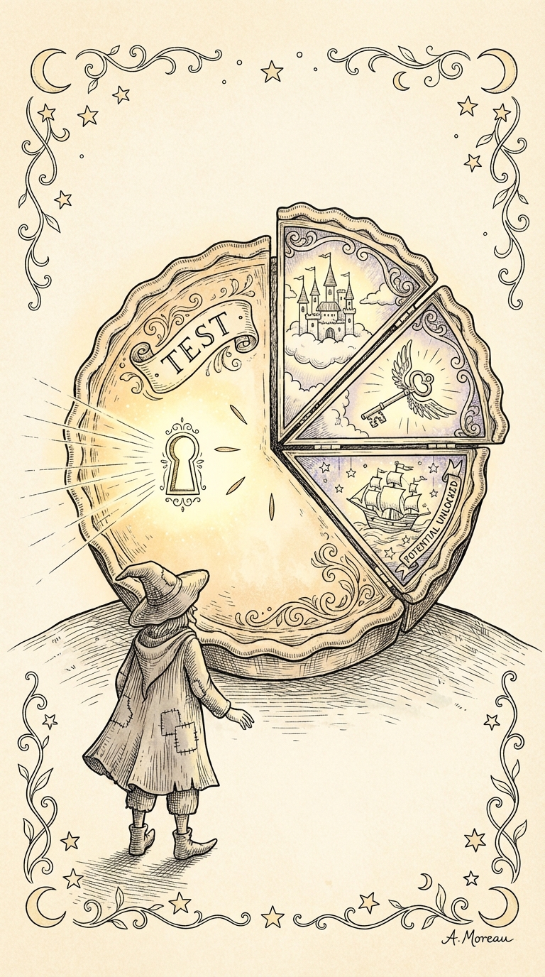 Your compass reads best at 25% first. Every small test adds a new marking to your judgment's outer ring.