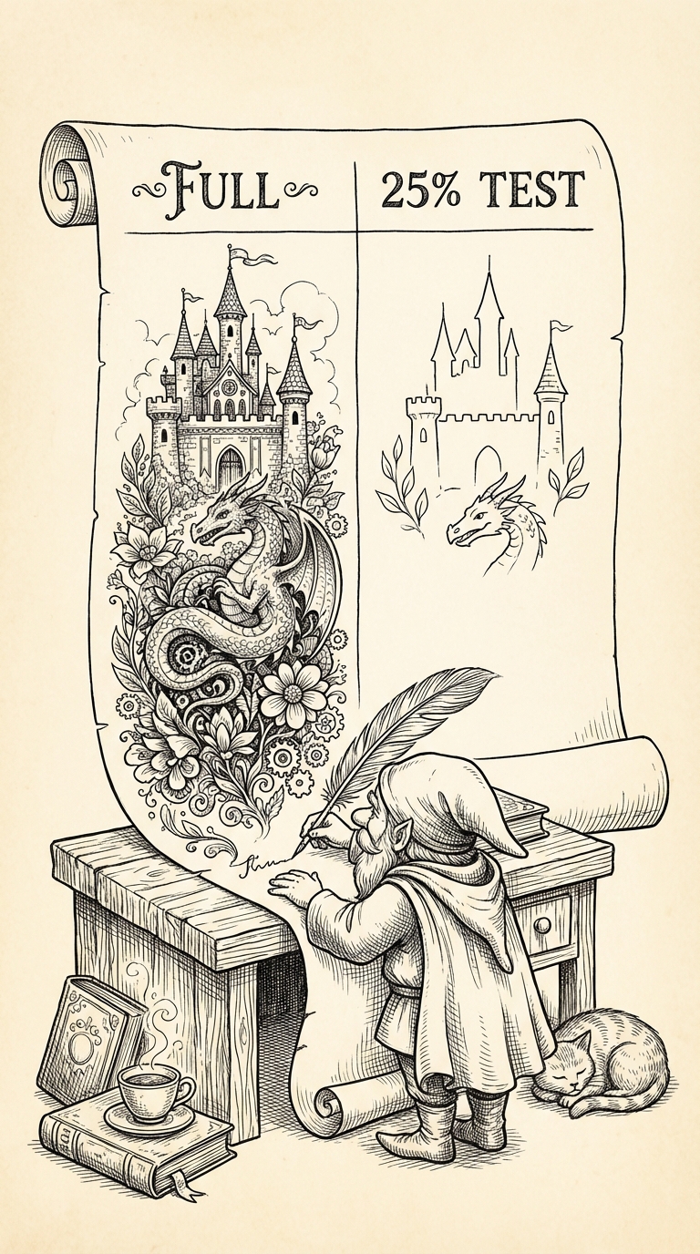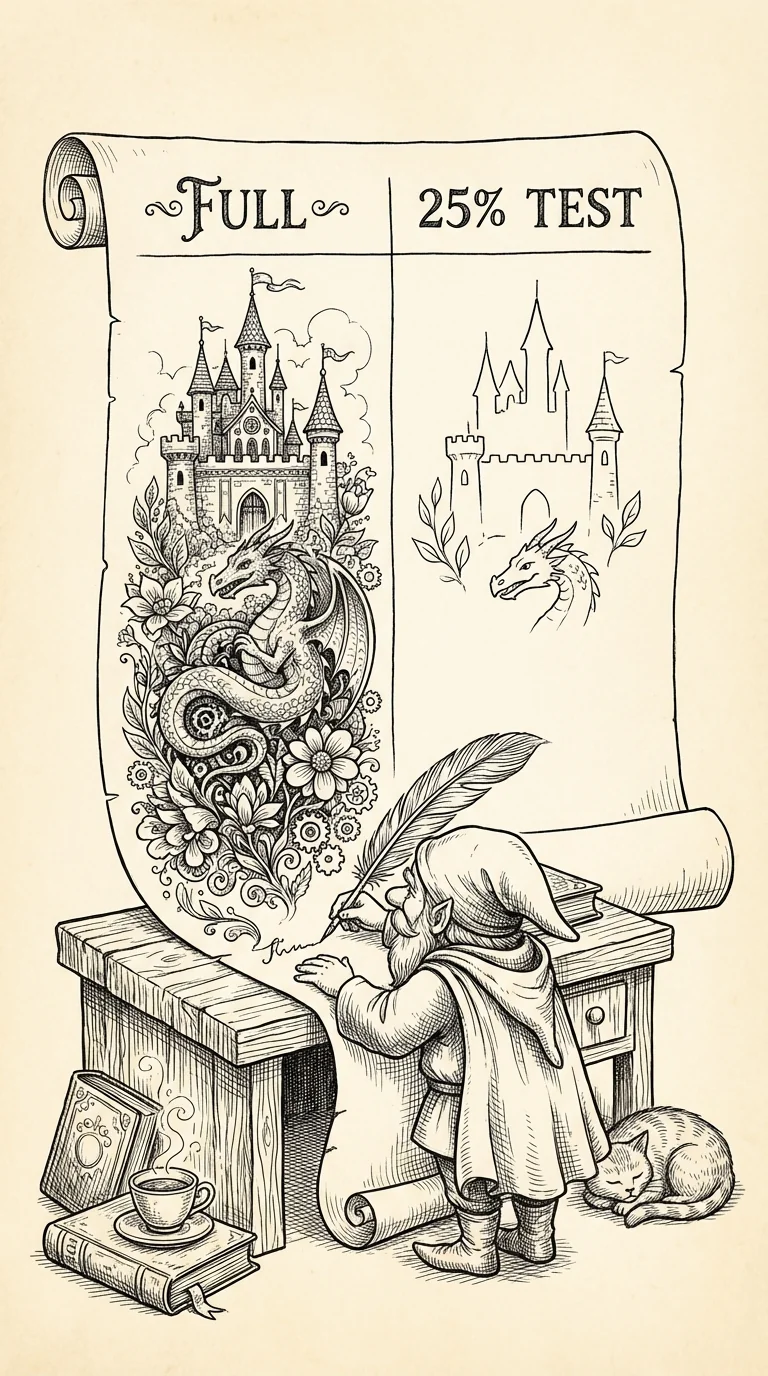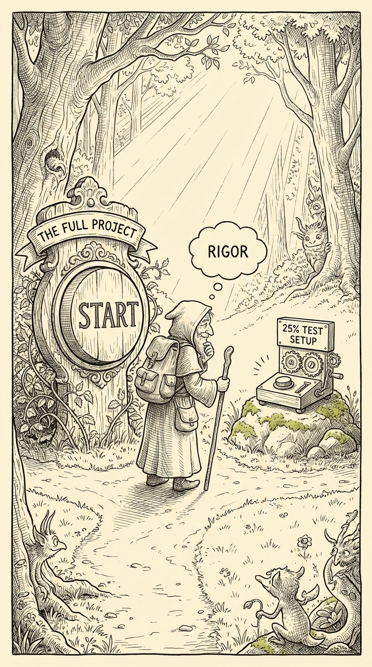 Commit: run your 25% version first. Don't skip the small test because you're confident. Confidence is not data.