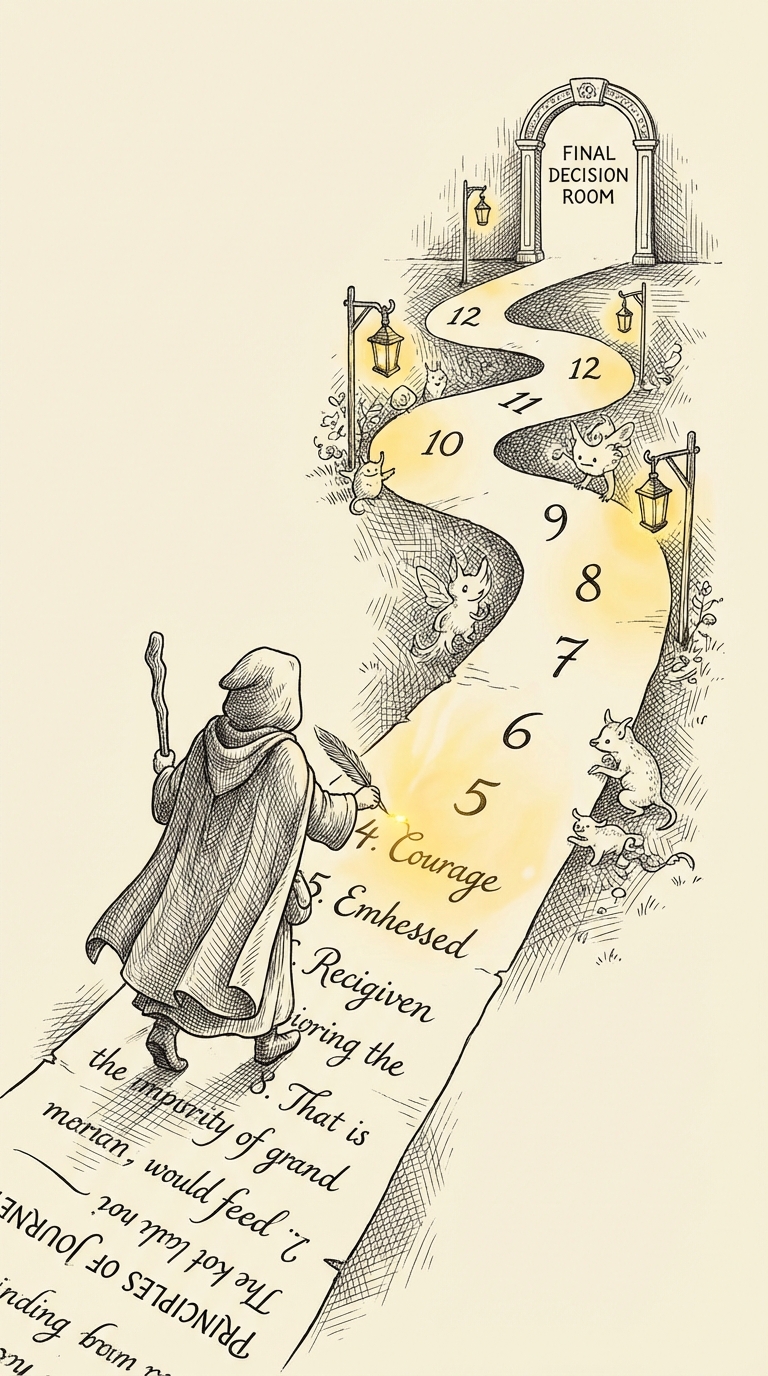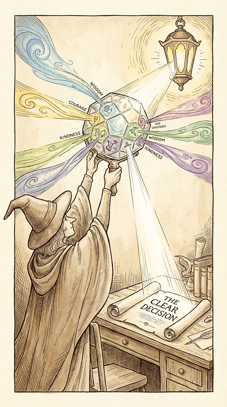 Multiple points of light on your compass now. Each principle a star, all pointing in the same direction — a decision made with full clarity.