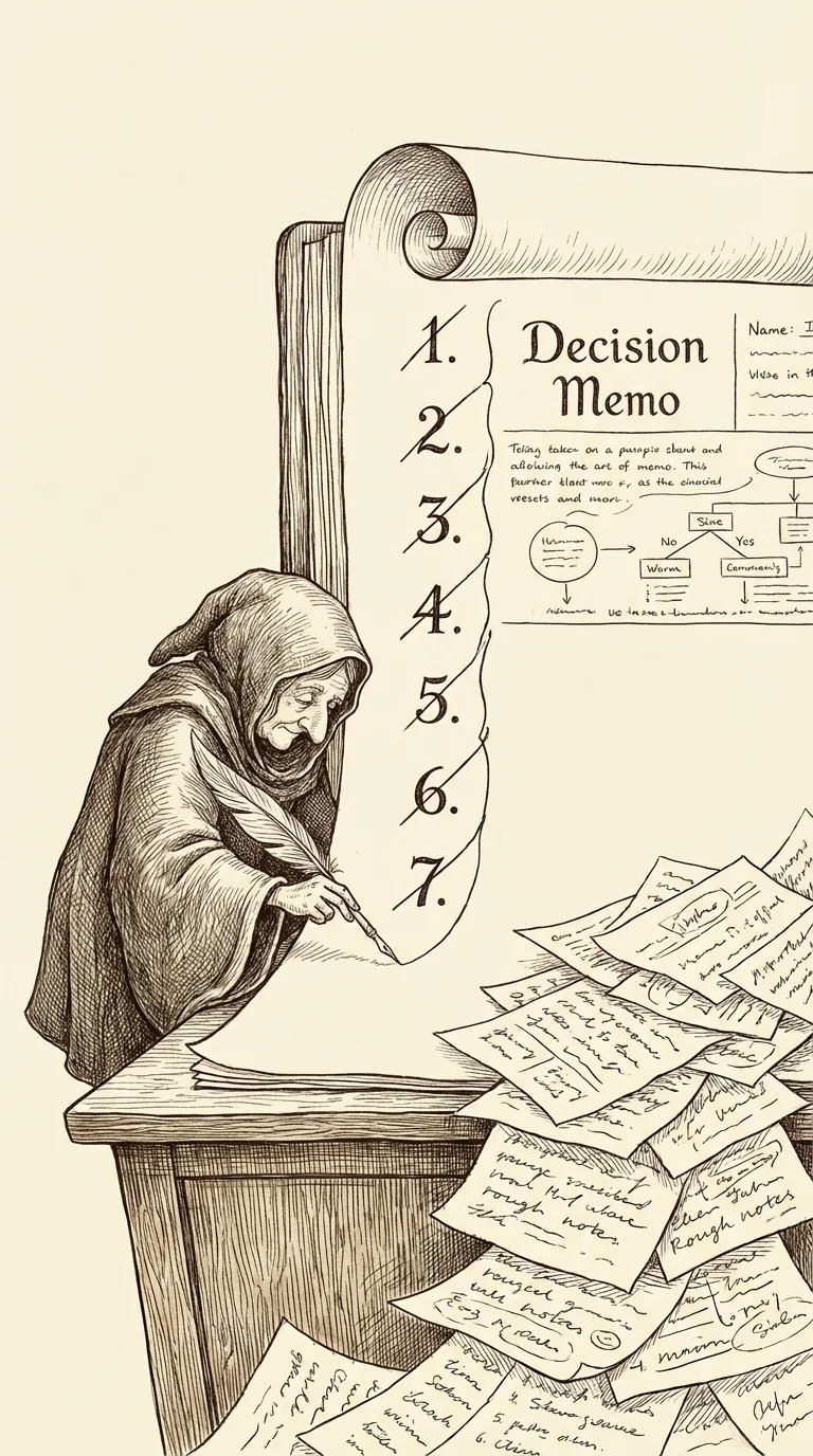 Today's exercise: pick a real decision — hiring, strategy, budget, build vs. buy. Walk it through all 10 principles. Write a half-page memo.