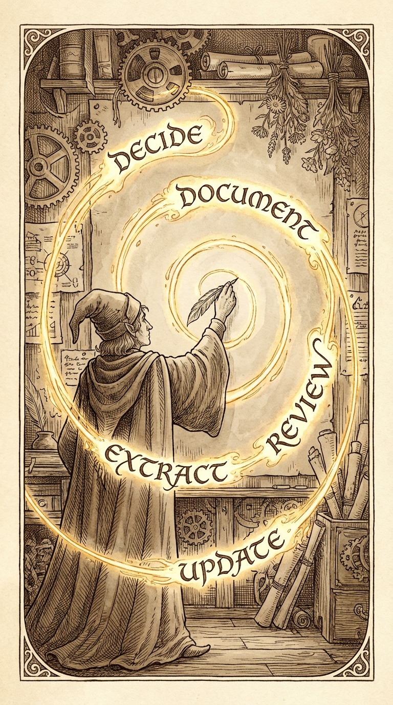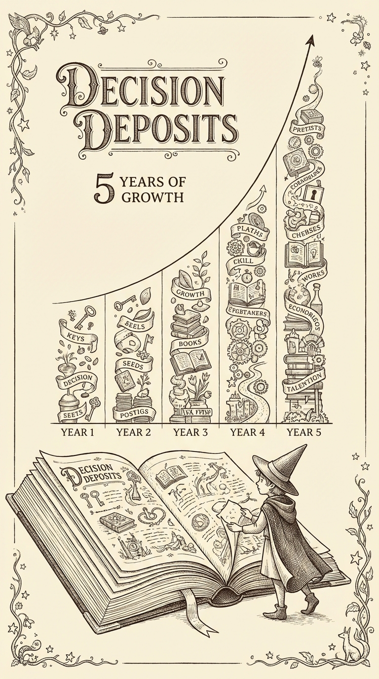 Judgment compounds. Every reviewed decision is a deposit. Every extracted lesson is interest. After five years, the account is extraordinary.