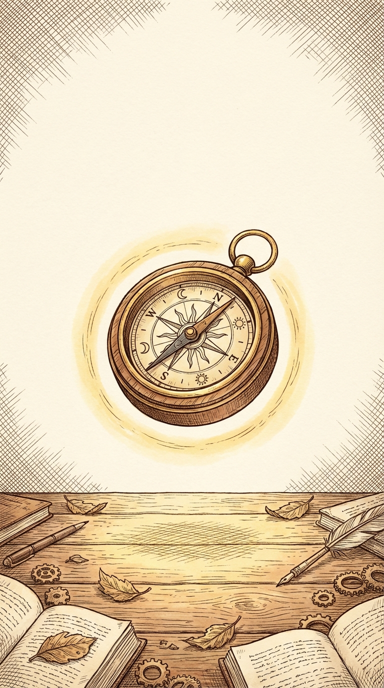 The compass floats now — rising slightly above the desk, surrounded by a warm golden aura. Tomorrow is the last day. You are ready.
